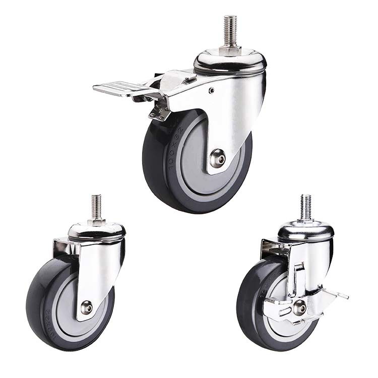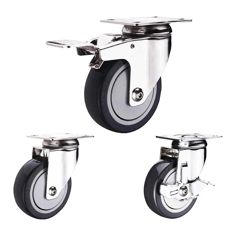 x| Nome del prodotto | Ruote girevoli per carichi medi in poliuretano con freno totale da 5 pollici e carico elevato da 300 | Stile | Unità di elaborazione grigia delle macchine per colata continua a uso medio |